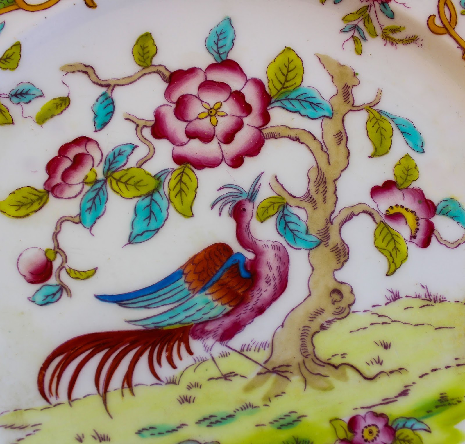The Bird of Paradise pattern is an old and extremely ornate pattern made by a number of China manufacturers, but none so impressively and intricately as this service from Coalport.... the detail and coloring in the pattern is simply magnificent and almost too intricate to describe accurately...